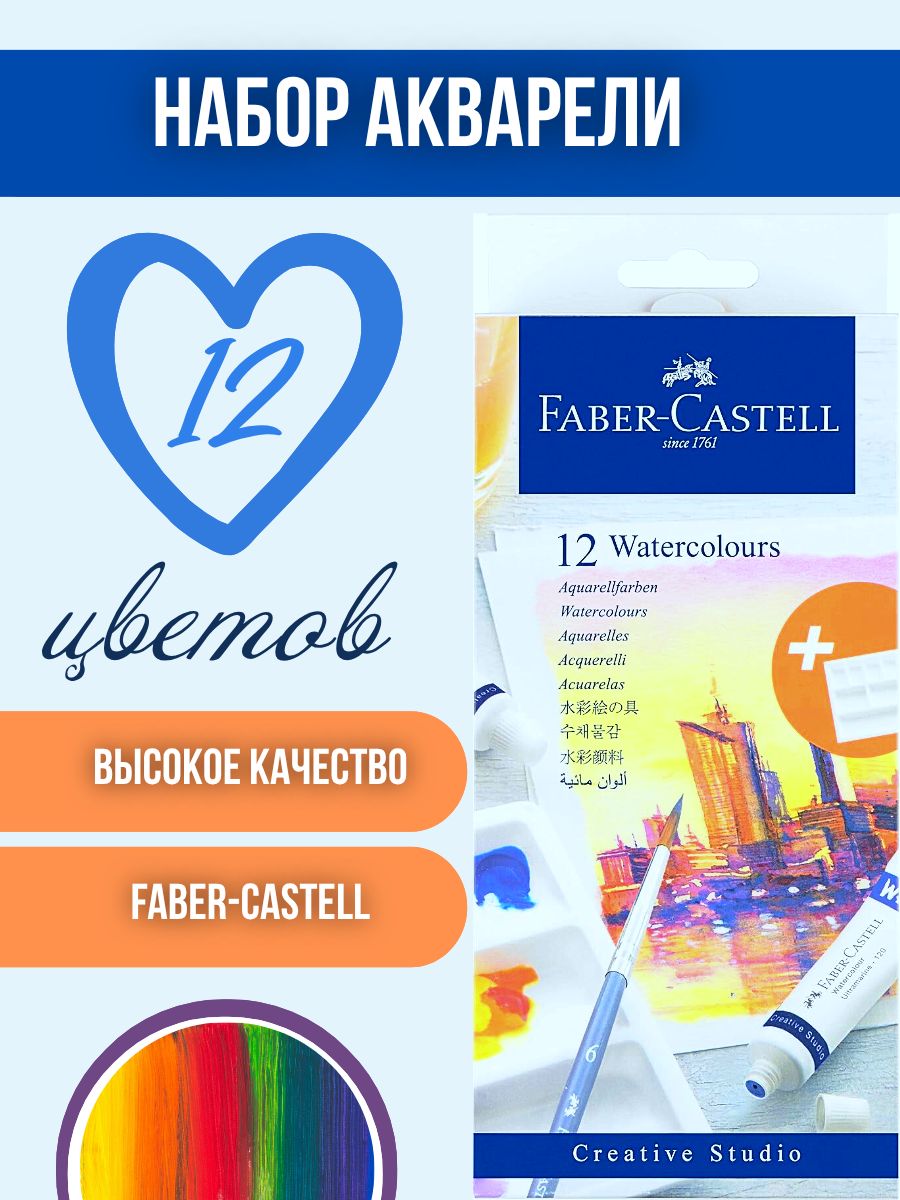 Набор акварельных красок Faber-Castell Creative Studio - идеальный выбор для художников и любителей рисования. В комплект входят 12 ярких и насыщенных цветов, которые позволят вам создавать удивительные произведения искусства и палитра для разведения красок. Каждая туба содержит 9 мл краски, что обеспечивает достаточное количество материала для разнообразных проектов.